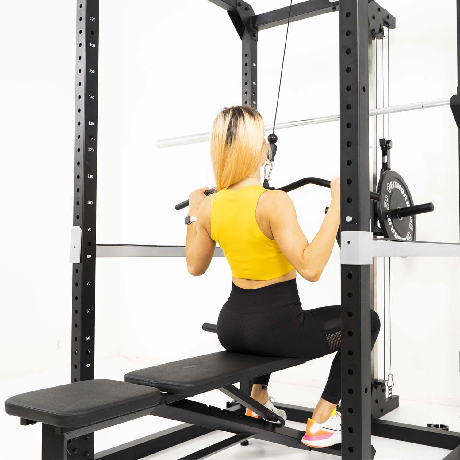 FitNord Power Rack Squat bur med övre och nedre dragstation