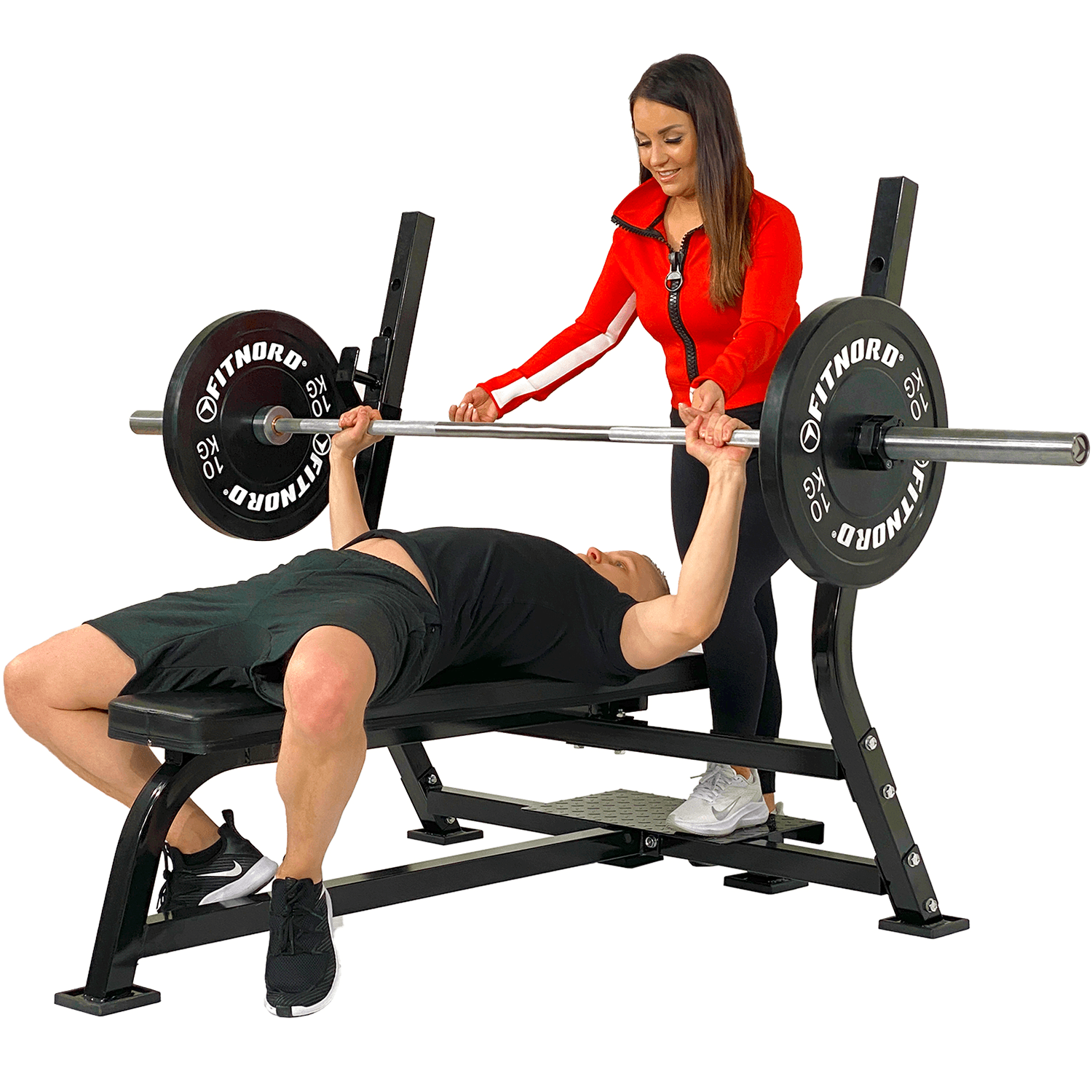 FitNords ställning för bänkpress är tillverkad av robusta 2 x 2-tums stålrör. Själva bänken är utförd i skumgummi och konstläder som ger en stum men bekväm bas. Höjden du placerar viktstången på kan justeras för bästa avstånd utefter dina förutsättningar. Baktill på ställningen finns en ståplatta placerad nertill för de tillfällen då hjälp önskas av en passare som kan bidra med lite extra avlastning när du vill maxa ut dina reps.
